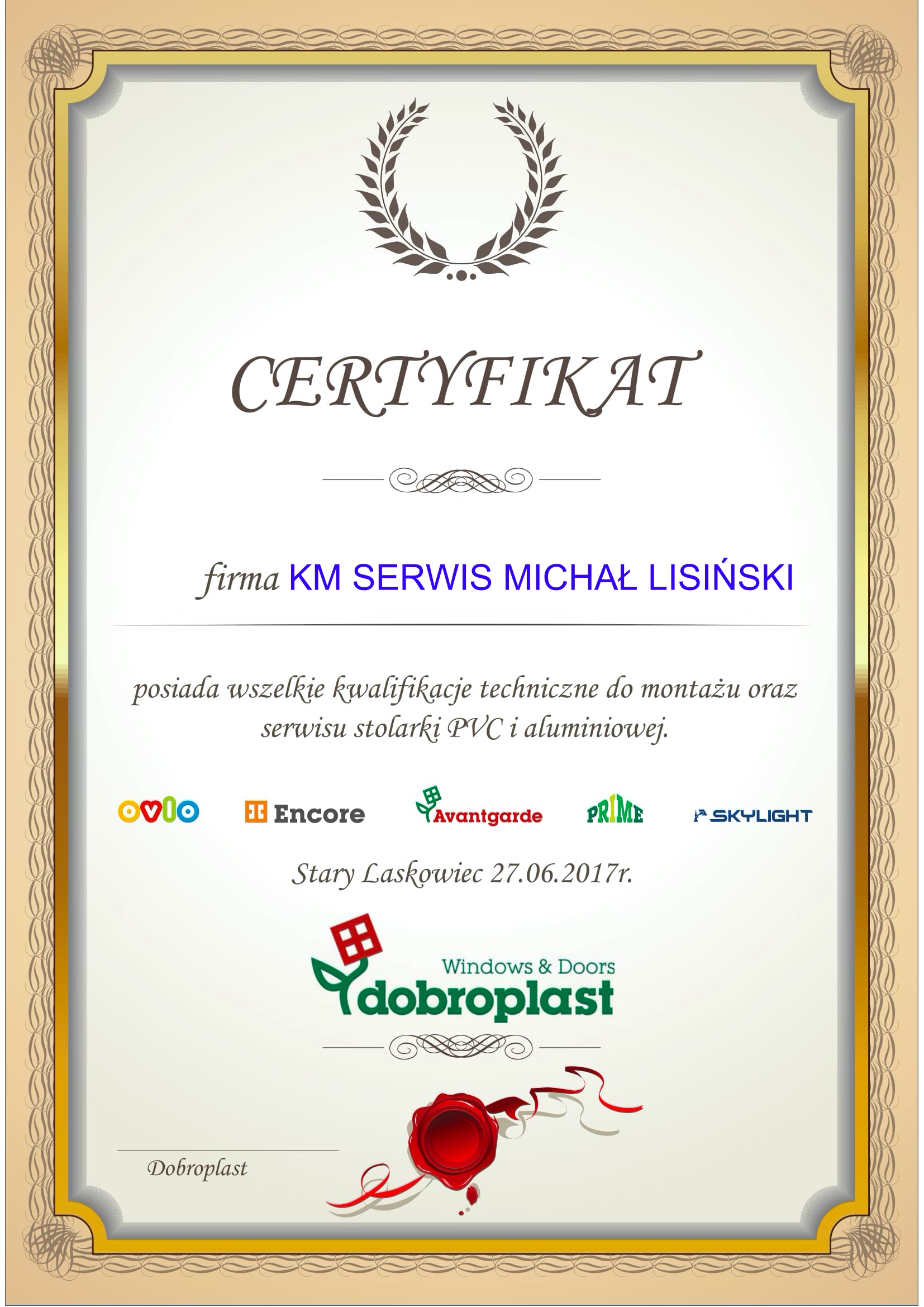 Posiadamy certyfikaty producentów okien jak i okuć okiennych.